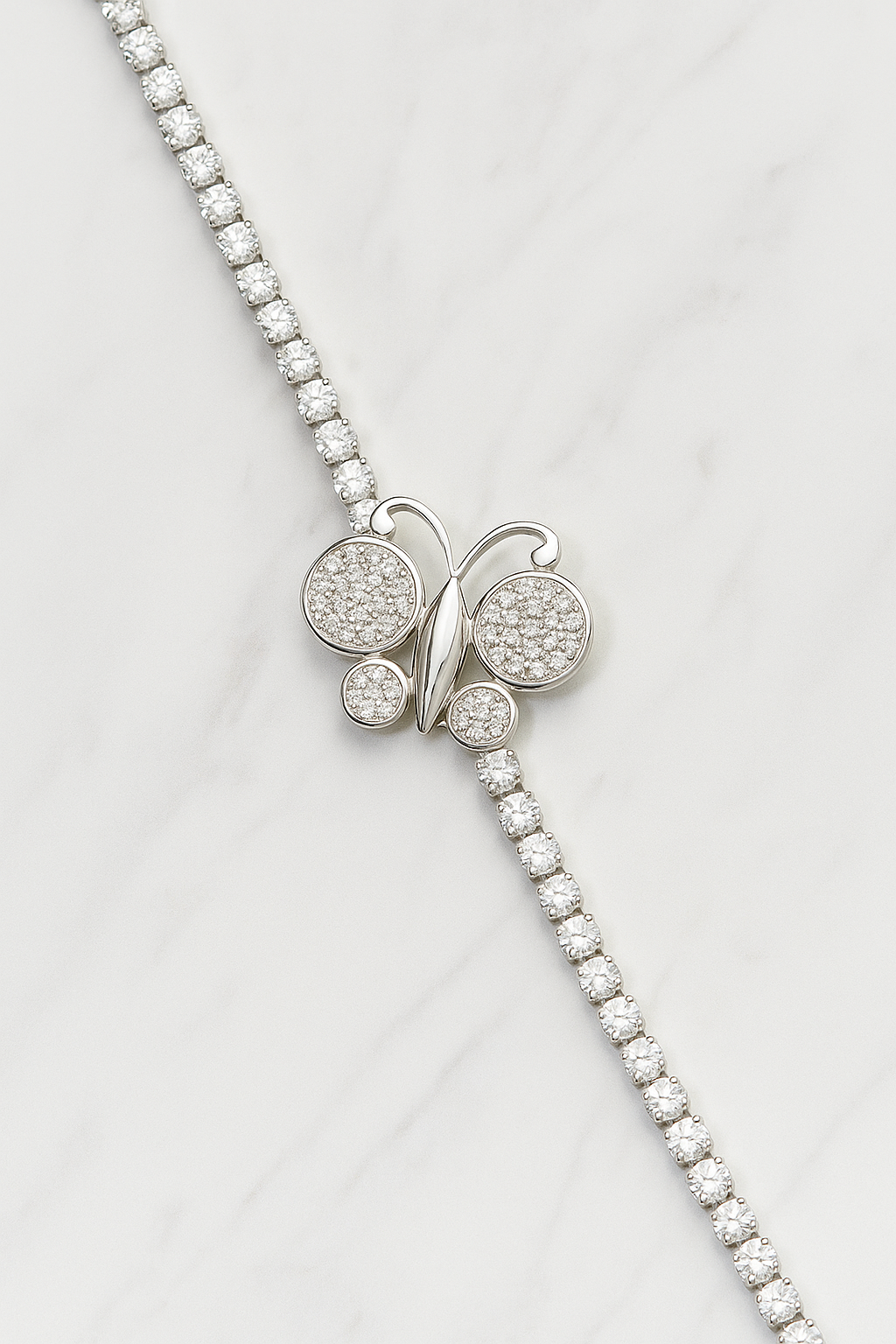 Elegant Butterfly Tennis Bracelet – Silver-Tone with Cubic Zirconia Stones