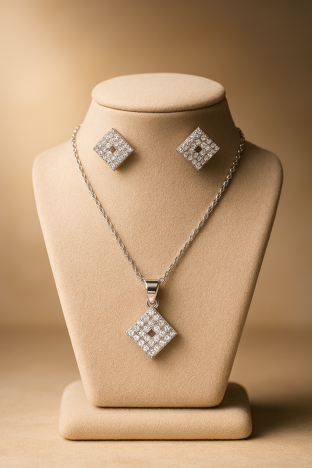 Elegant Square Diamond Locket & Earring Set – Zar e Nisa